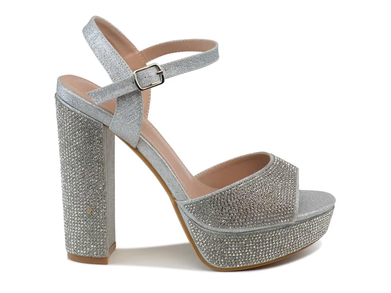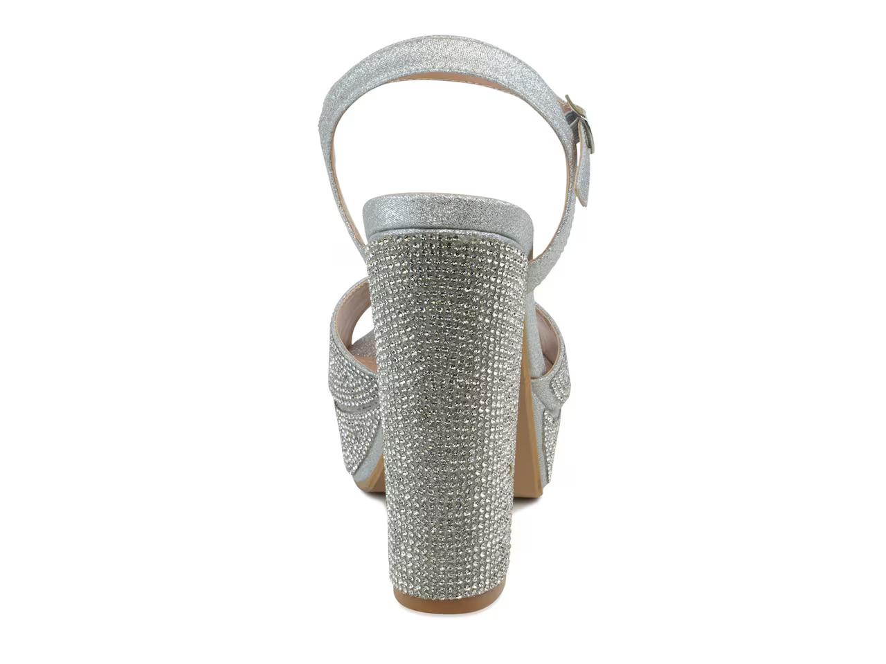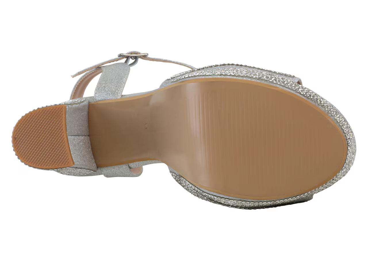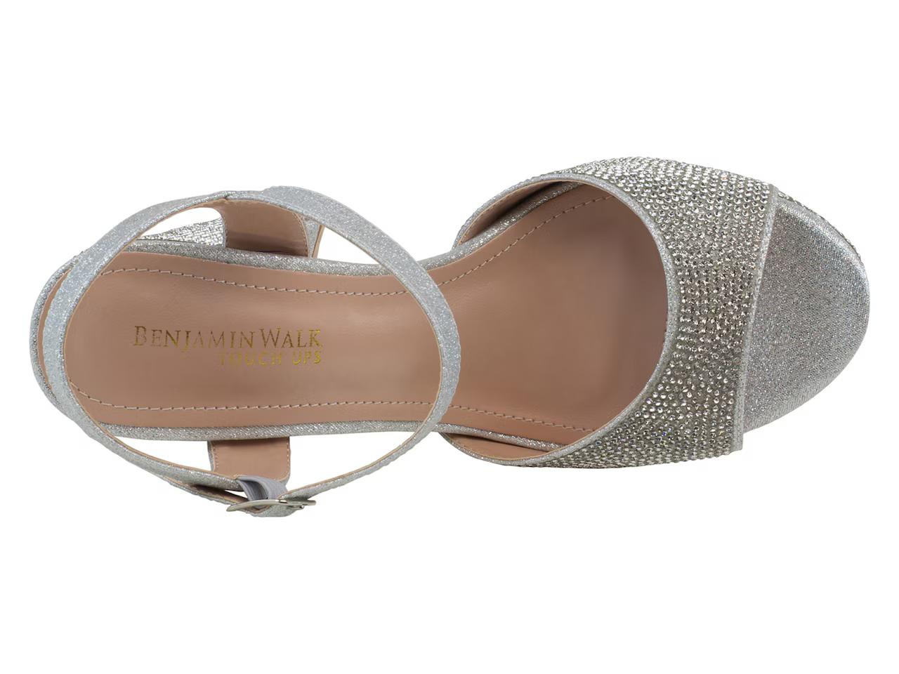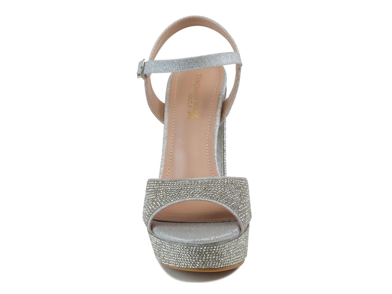 Look pretty and glitzy in the Lynx platform sandal from Touch Ups by Benjamin Walk. Lifted with a sky-high heel and platform, this two-piece sandal is highlighted with studded stones for a sparkly flair.