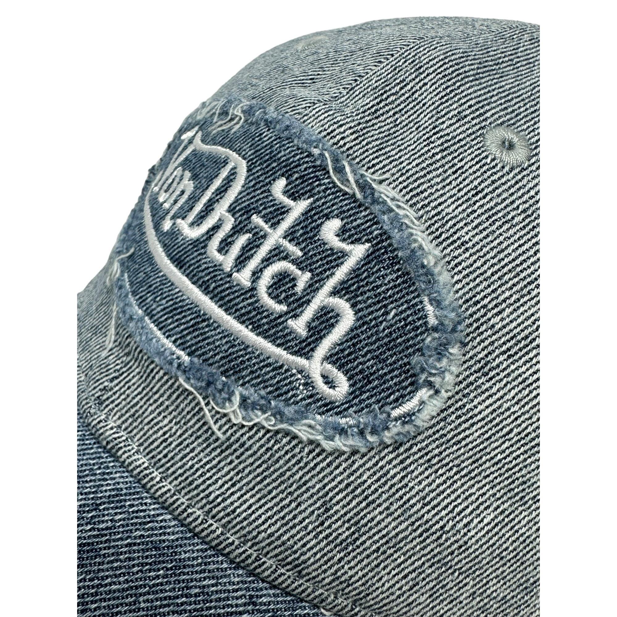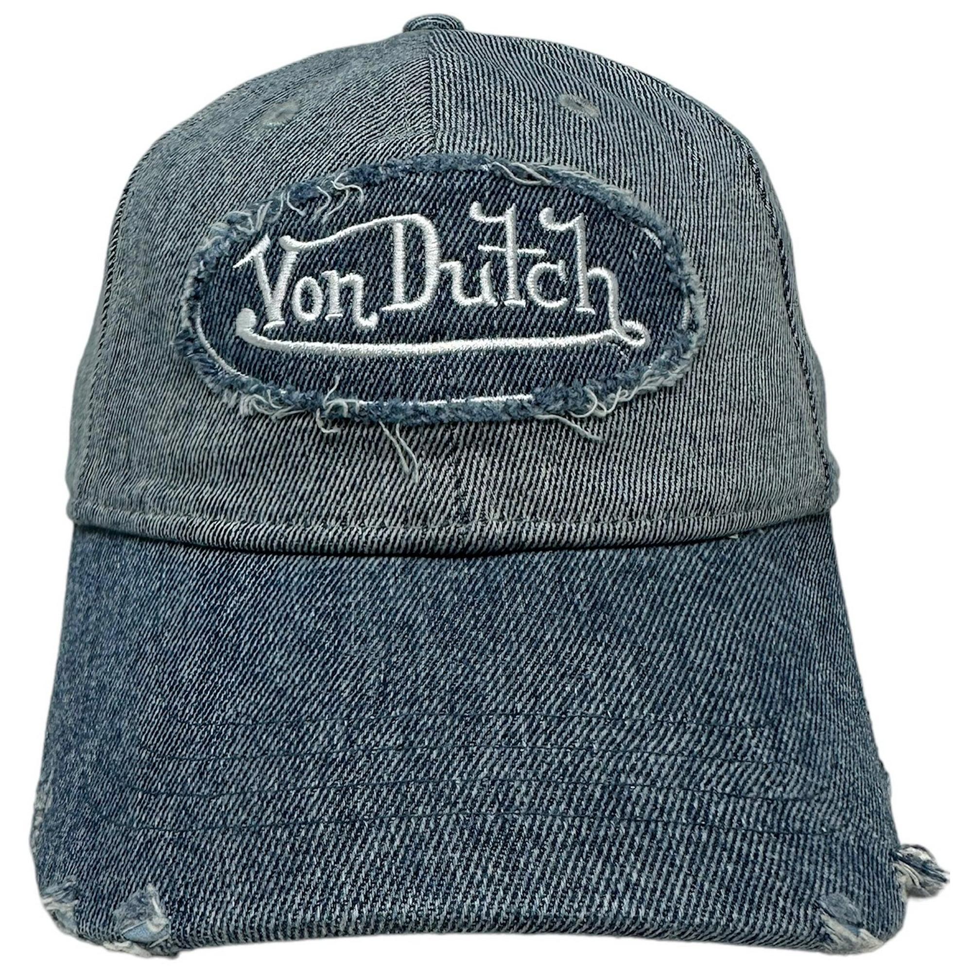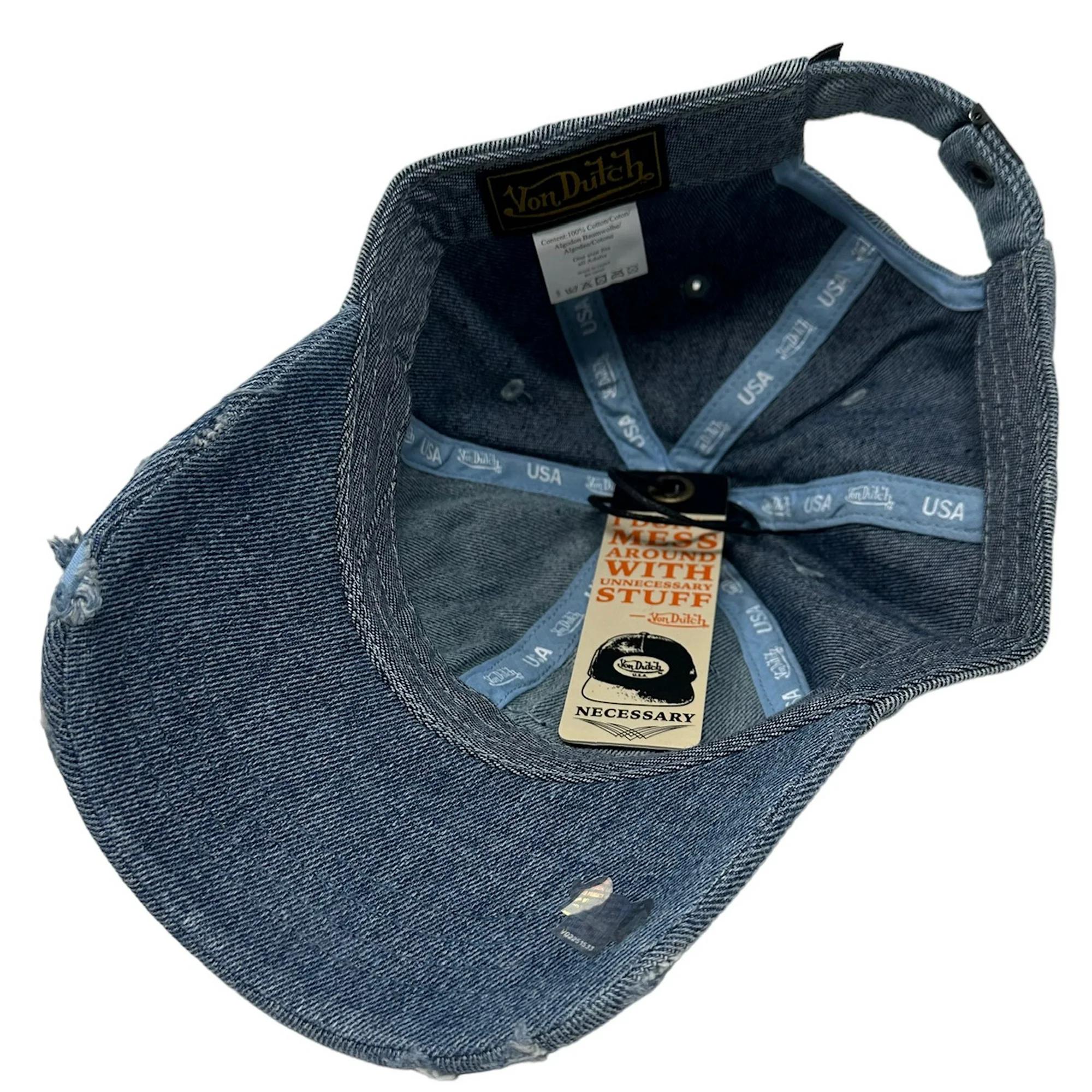 Von Dutch Strapback Hat Blue Denim Distressed Rips Unstructured Dad Cap