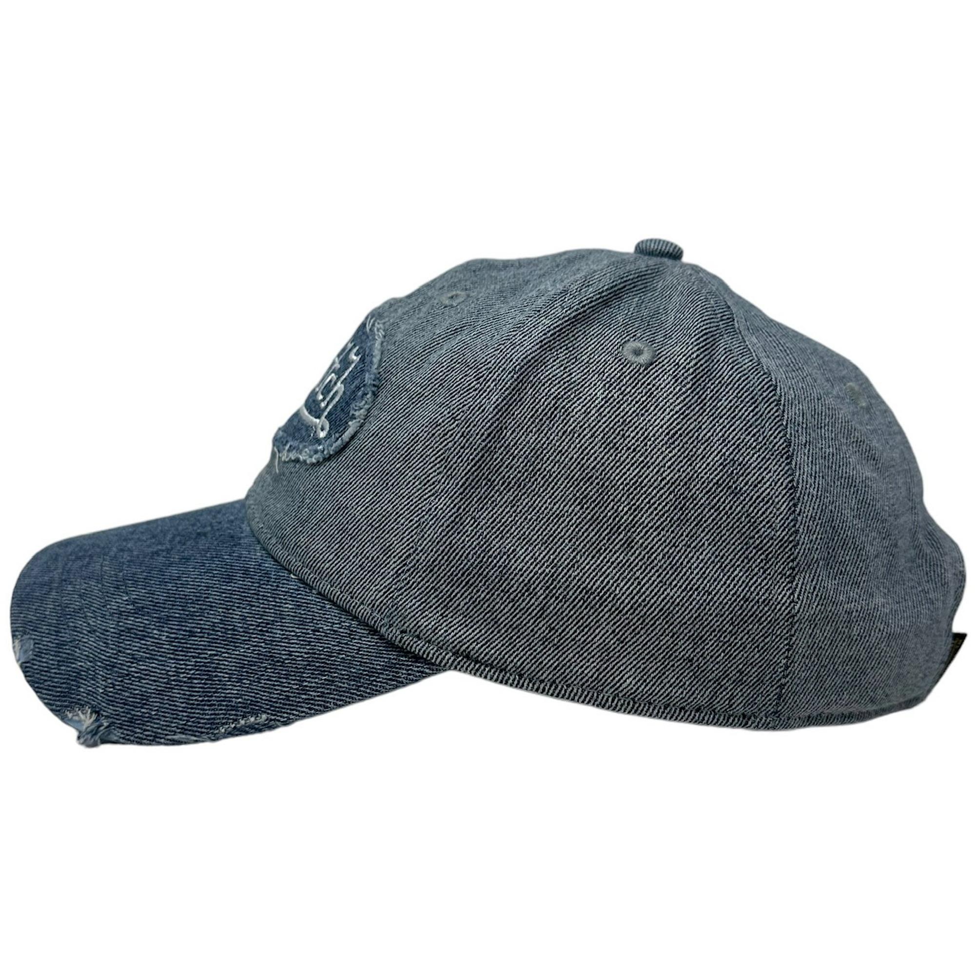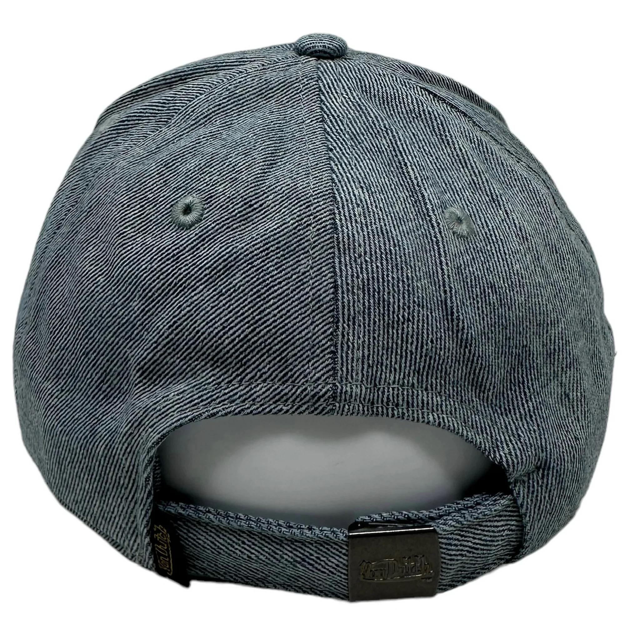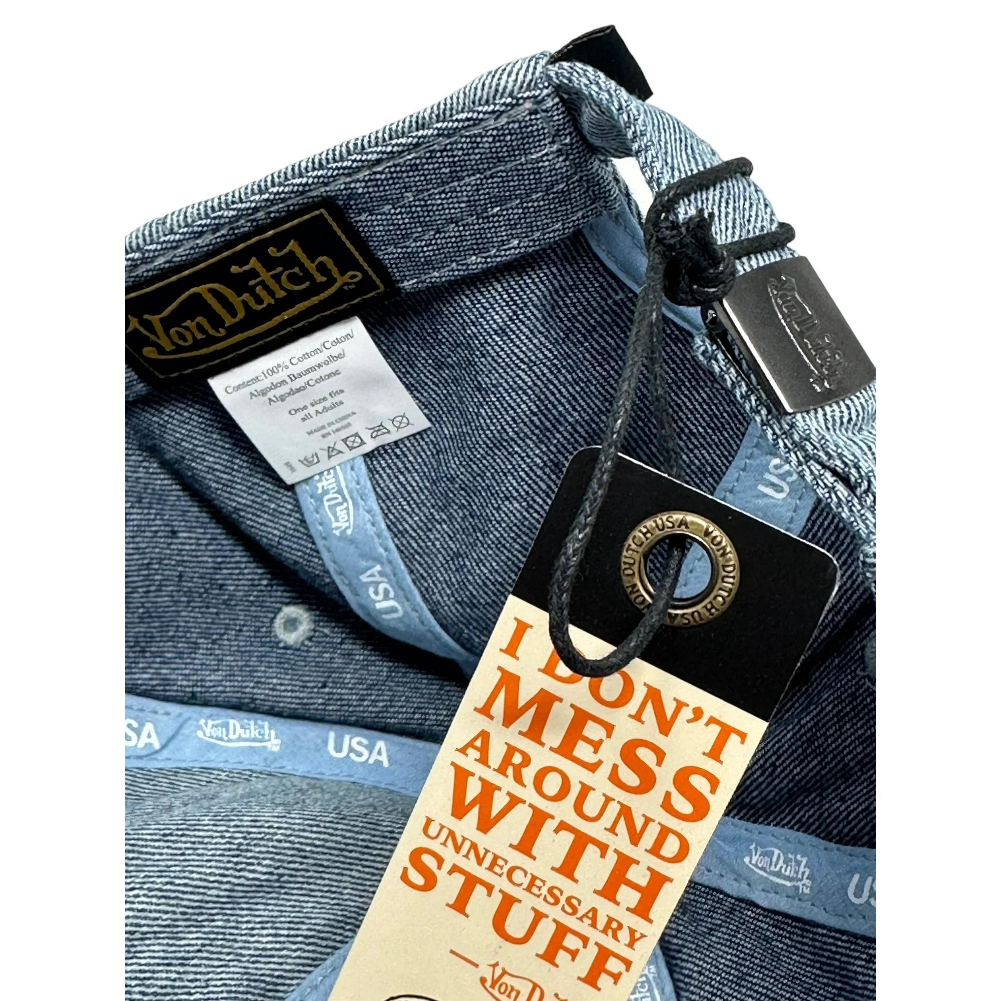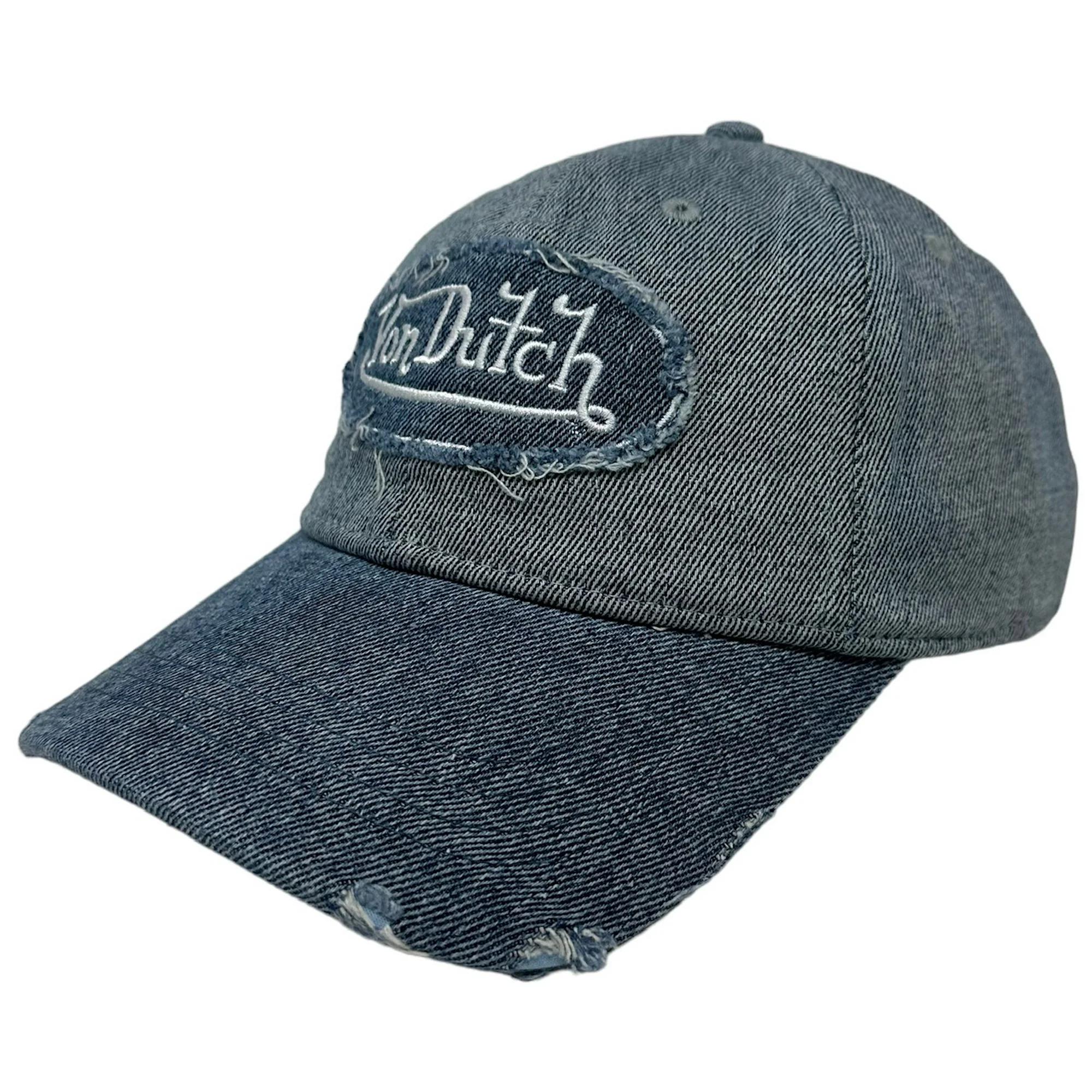 Von Dutch Strapback Hat Blue Denim Distressed Rips Unstructured Dad Cap