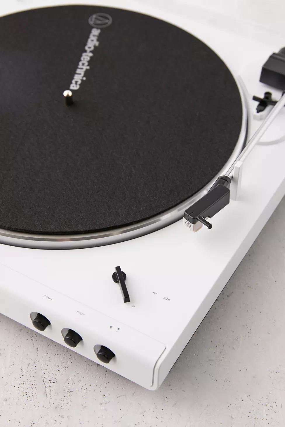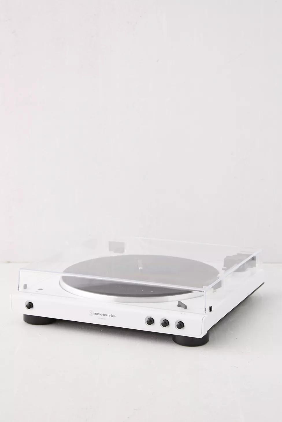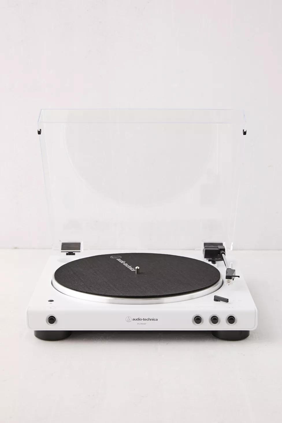 Fully automatic, Bluetooth-enabled belt-driven turntable from Audio-Technica to keep your beats fresh and your hands free. Connects to powered speakers and headphones via cables or Bluetooth for an unforgettable, flexible listening experience through your whole space, all with the high-quality performance you'd expect from Audio-Technica. Complete with two speeds - 33 1/3 and 45 RPM. To play outside of the US, please pair with a power converter. Available in a special limited distribution, get this special white colorway exclusively at Urban Outfitters in North America.