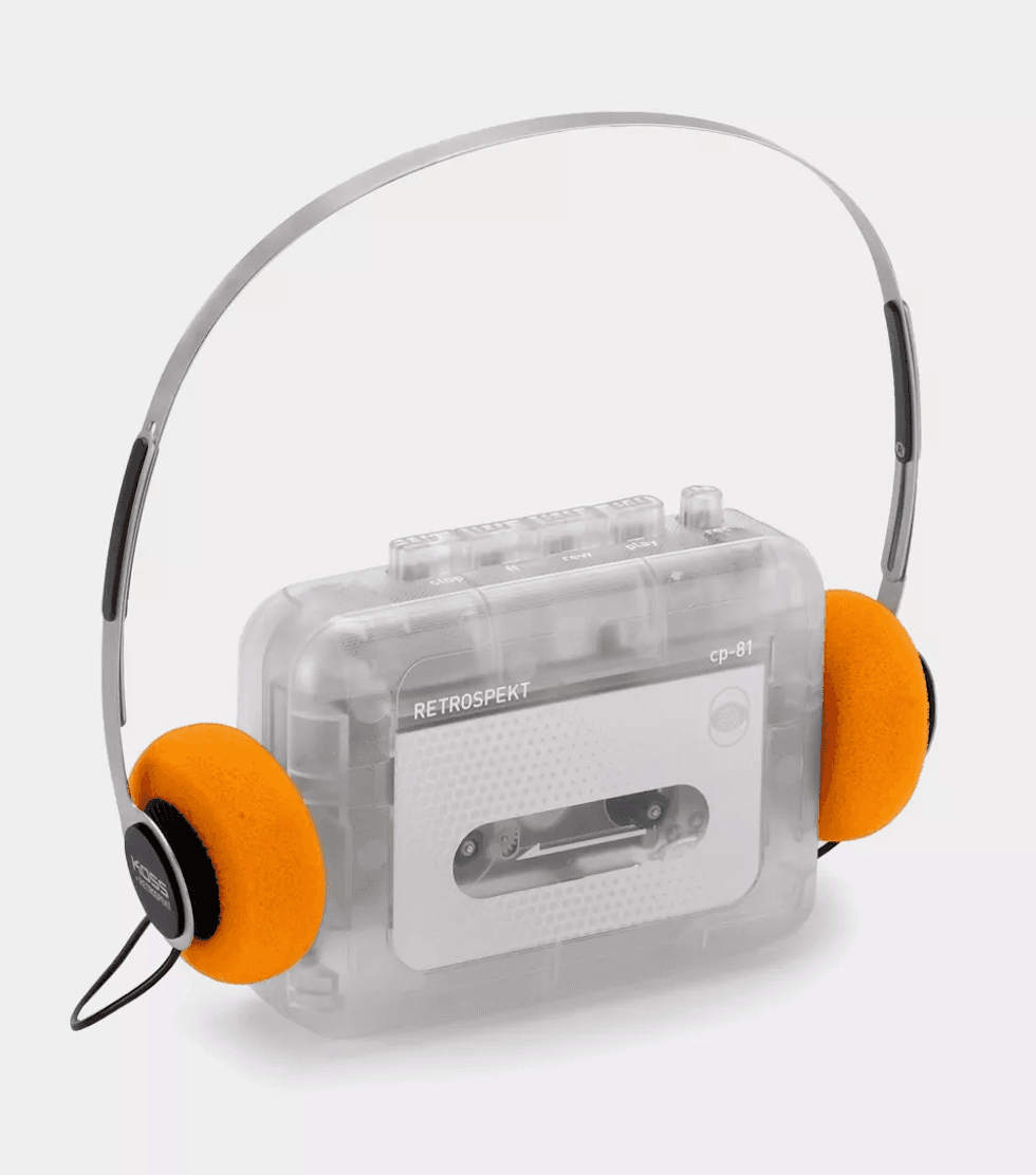 The CP-81 from Retrospekt is a completely new portable cassette player that features a minimalistic design aesthetic anchored by a clear, plastic body and has all the core cassette player functions. It also has something far less common on most vintage models: a mono line-in record capability allowing you to record directly from any audio source via an AUX cable. Add in a few blank tapes and your smartphone and suddenly you’re the new master of the lo-fi mixtape. The player comes packaged with Retrospekt’s exclusive Koss headphones featuring an adjustable, stainless-steel headband and orange foam cushions.