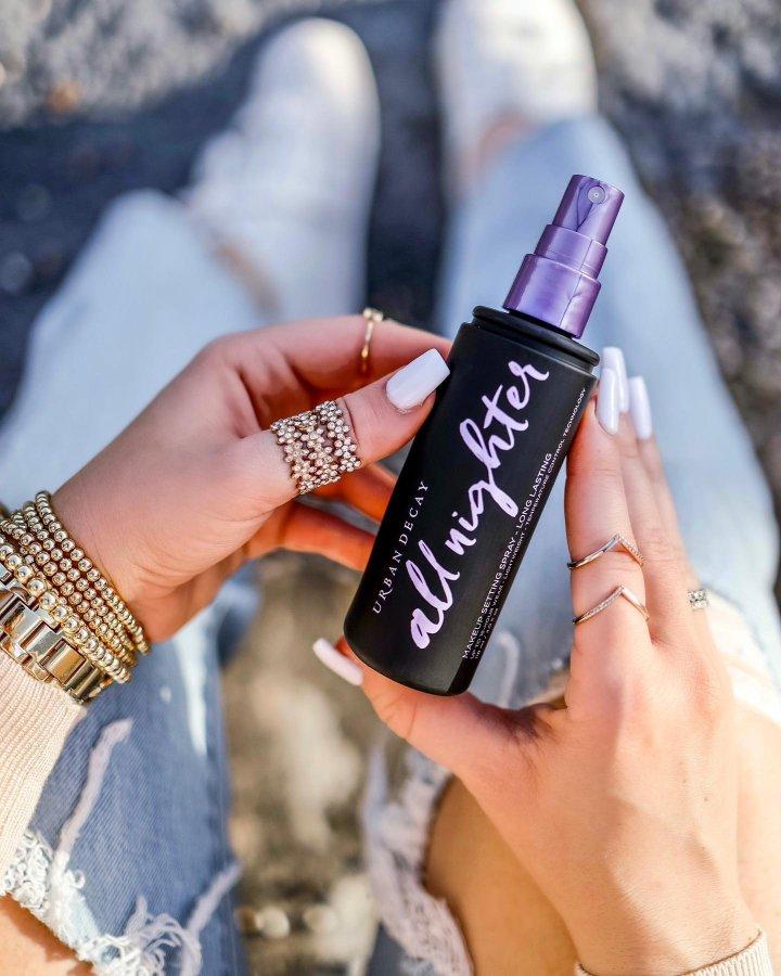 Set makeup with the Urban Decay All Nighter Long-Lasting Makeup Setting Spray. Lock in your makeup look for up to 16 hours with this microfine mist that ensures all day flawless makeup that won't settle into fine lines, melt or fade.