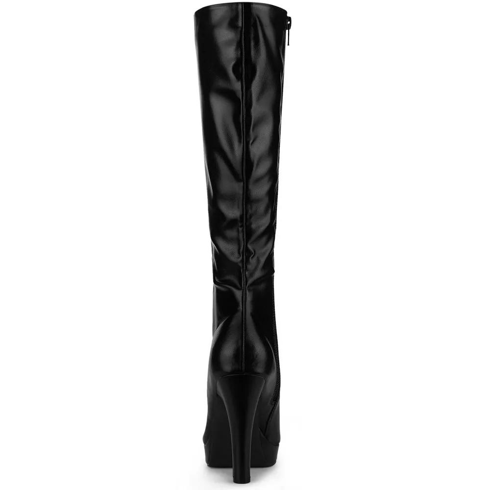 Allegra K Women's Chunky Heel Round Toe Platform Knee High Boots
