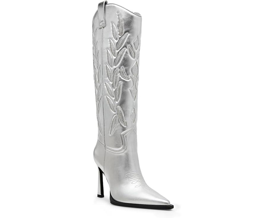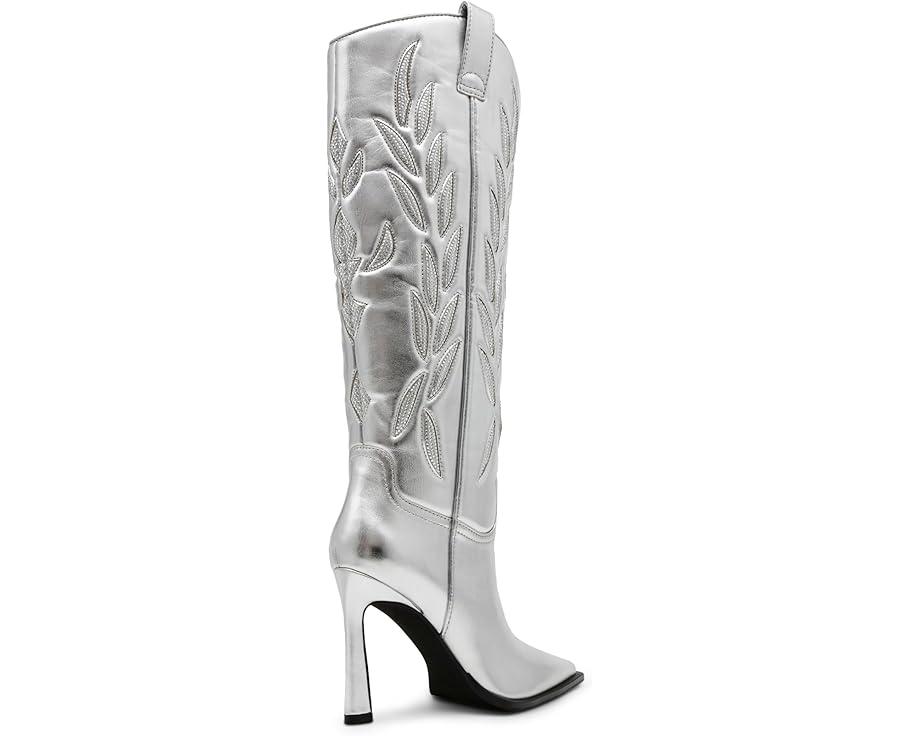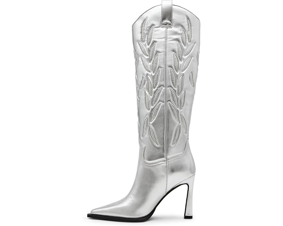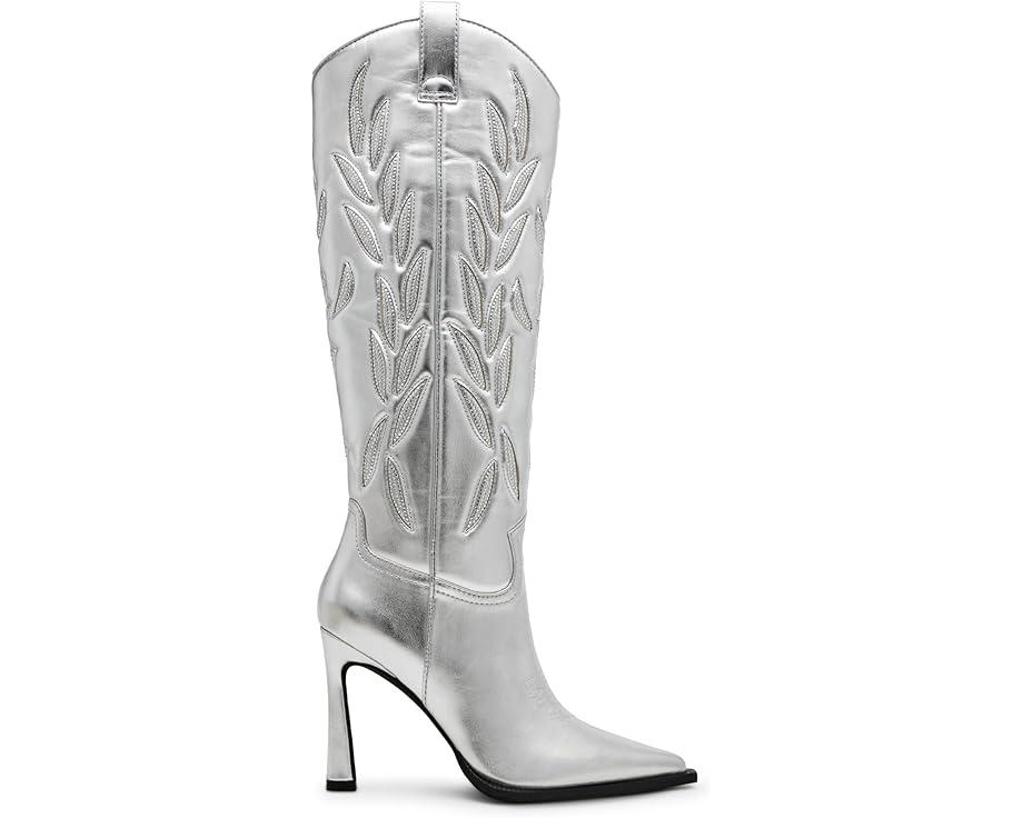 The Steve Madden® Kinzee is a stylish western boot that combines classic cowboy elements with modern flair. Featuring intricate stitching on the shaft with a curved top and a comfortable fit, thispull-on style boot is a must-have in your footwear collection. It features a leather upper with pointed toe silhouette, synthetic rubber lining, and a rubber insole. The stiletto heel offers a exquisite touch to the look and the pull straps allow easy on/off.