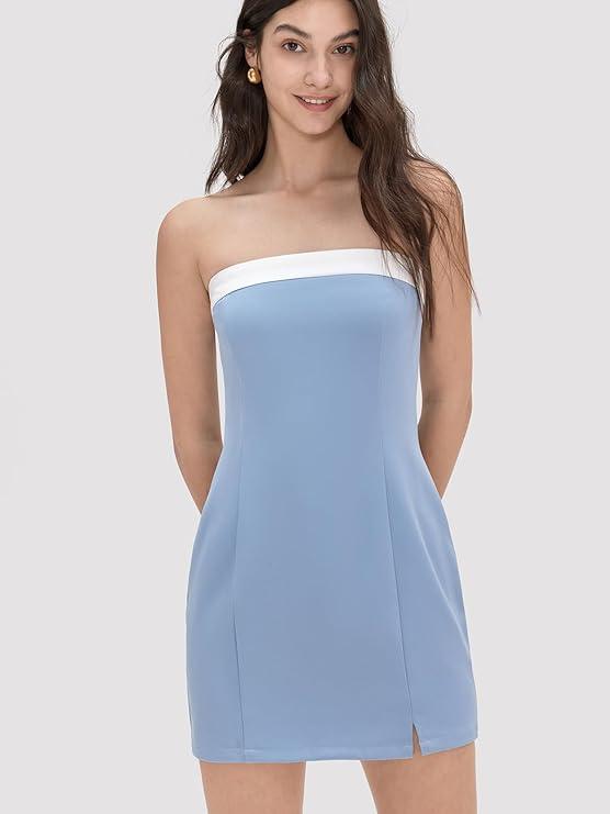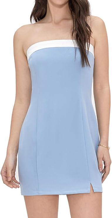 Womens Strapless Mini Dress Slim Fit Contrast Color Stretchy Sexy Club Nightout Sleeveless Tube Dress