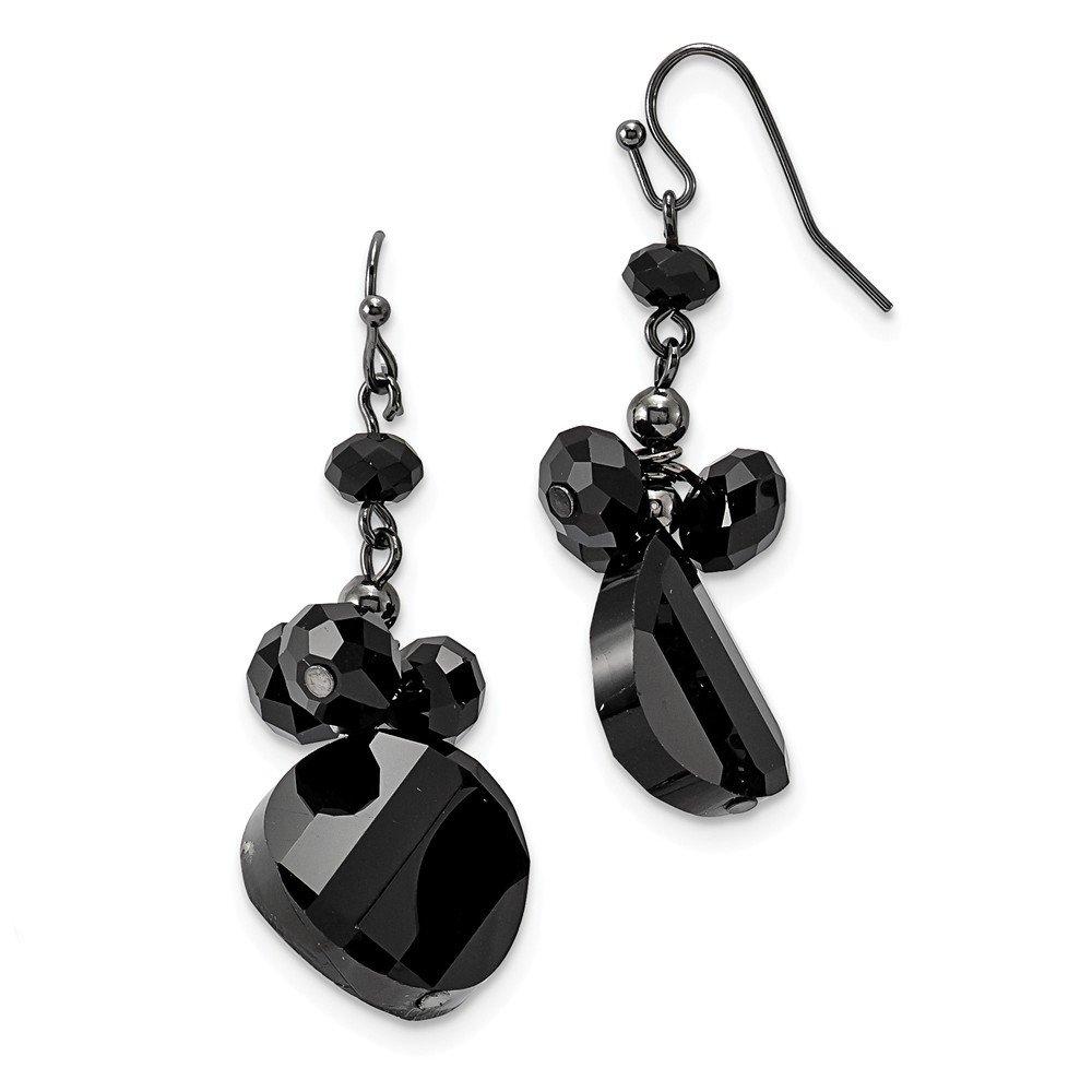 Black-plated Black Crystal Round Drop Earrings - in Plated Metal - Product Attributes: - Crystal - Shepherd hook - Gift ready jewelry box included - Measures 48x20mm Wide - Width of Item: 20 mm - Length of Item: 48 mm - Earring Closure: French Wire - Earring Type: Drop & Dangle -WELCOME To Jewelry Web Fine Jewelry Gifts Offering; earrings in base ; Width: 20MM ; Hypoallergenic ; Nickel Free ; Plated ; ; Shepherd hook