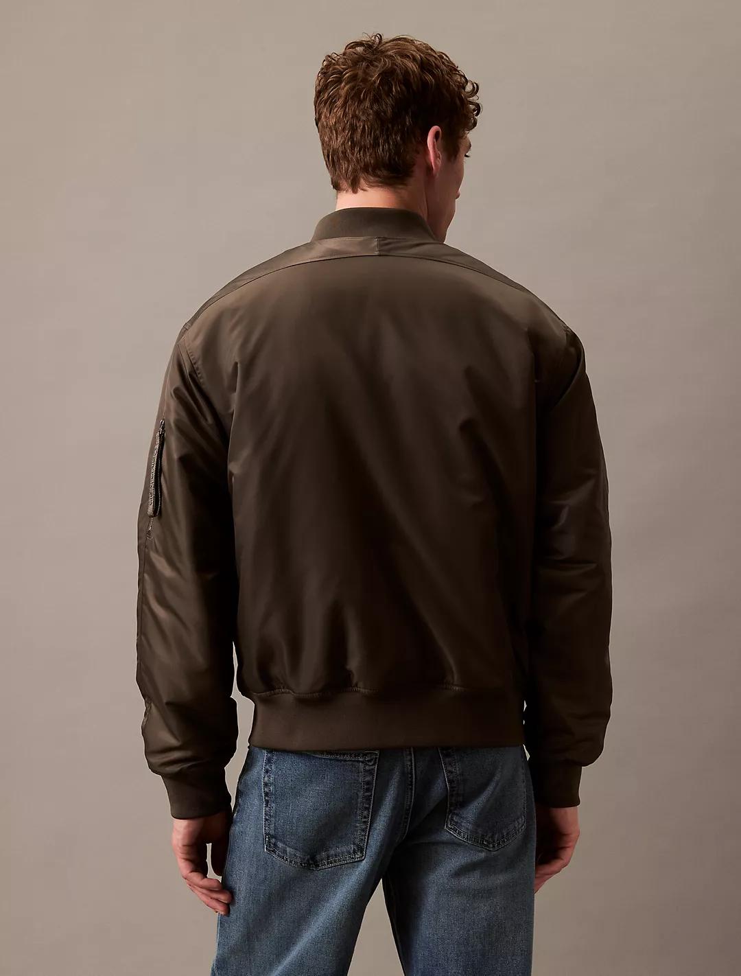 Engineered for weather protection, this Calvin Klein bomber jacket is crafted from recycled polyamide with wind and water-resistance. Cut in a classic fit with a sidearm zip pocket and PrimaLoft® insulation. Finished with ribbed knit trim for a close, snug fit.