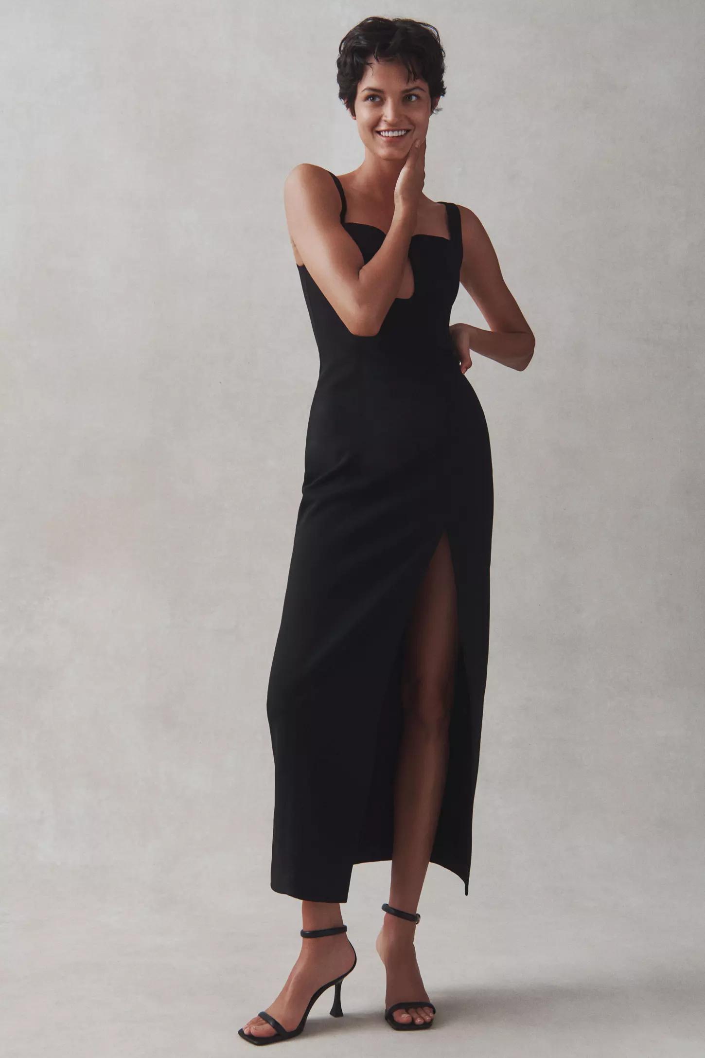 MISHA Franka Sleeveless Side-Slit Bonded Crepe Maxi Dress