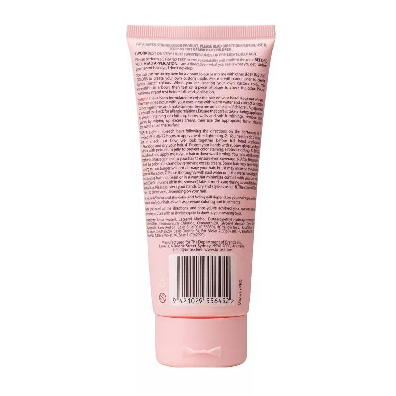 Brite Instant Color Pastel Pink gives your hair gorgeous show stopping colour. Express yourself! Transform your hair with colour that lasts 5-30 washes. The hydrating formula conditions as it colours, leaving your hair silky smooth. Before dyeing your hair perform a test on a small hidden section to make sure you’re happy with the results. Everyone’s hair is different so the results will vary.
