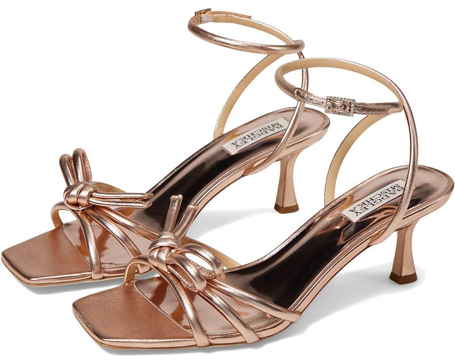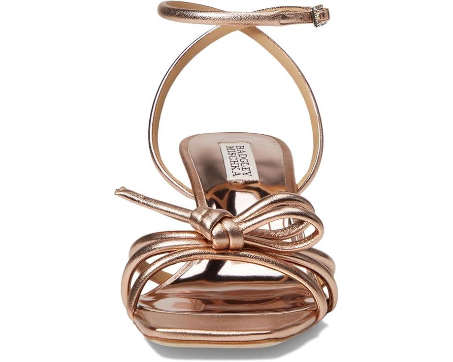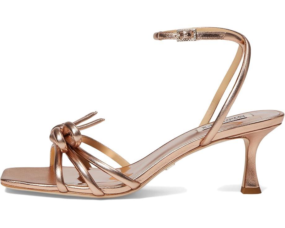 Add a charm to your party-wear looks by complementing them with Badgley Mischka® Loyalty Sandals that feature an open squared toe shape and knotted strappy details. The sandals are designed with a leather upper, breathable leather lining, and a synthetic insole for enhanced comfort. The ankle strap and buckle closure is designed to give you a customizable look.